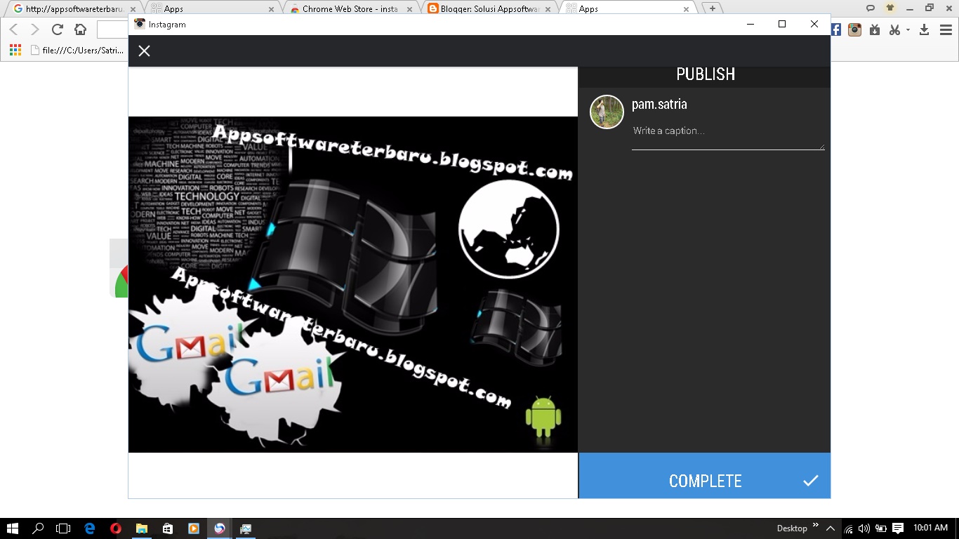 - Add to Chrome install Instagram(Unofficial) untuk upload foto